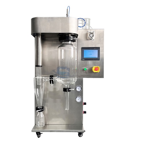 小型噴霧干燥機(實驗型噴霧干燥機)主要適用于高校、研究所和食品醫(yī)藥化工企業(yè)實驗室生產(chǎn)微量顆粒粉末,對所有溶液如乳濁液、懸浮液具有廣譜適用性, 適用于對熱敏感性物的干燥如生物制品、生物農(nóng)藥、酶制劑等,因所噴出的物料只是在噴成霧狀大小顆粒時才受到高溫,故只是瞬間受熱,能保持這些活性材料在干燥后仍維持其活性成份不受破壞。